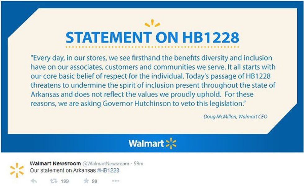 Arkansas Gov. Asa Hutchinson Won't Sign Anti-Gay Bill As Is, Reports Walmart