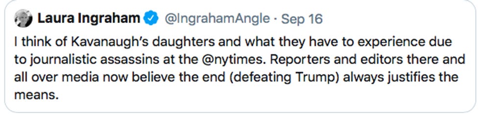 Republicans will try to guilt Democrats for playing hard ball. Ignore them. Professional terrible person Laura Ingraham even pretended she was capable of feeling genuine sympathy for another human being.