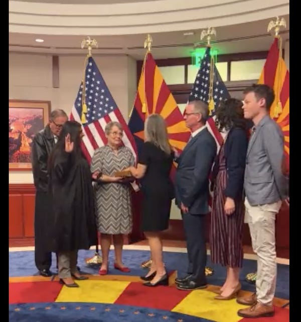Katie Hobbs was officially sworn in Monday, January 2, as Arizona governor. She's the first Democratic governor since Janet Napolitano, and perhaps most importantly she's not Kari Lake, an anti-democratic, election-denying, drag-queen-dragging MAGA loon.