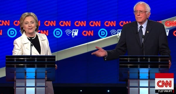 Our Wonkette Insta-Fact-Check from our liveblog showed that indeed Hillary Clinton DID endorse a $15 minimum wage A YEAR AGO. Did she copy Bernie? PROBABLY. But maybe not! The difference between these two on this issue is more in the style of how they'd get it done, as opposed to substance. Bernie wants a nationwide $15 minimum wage, period, full-stop. Hillary wants to start with $15 in big 'spensive cities and $12 in other areas, and work with poorer, smaller places to push them toward the goal of $15, eventually.