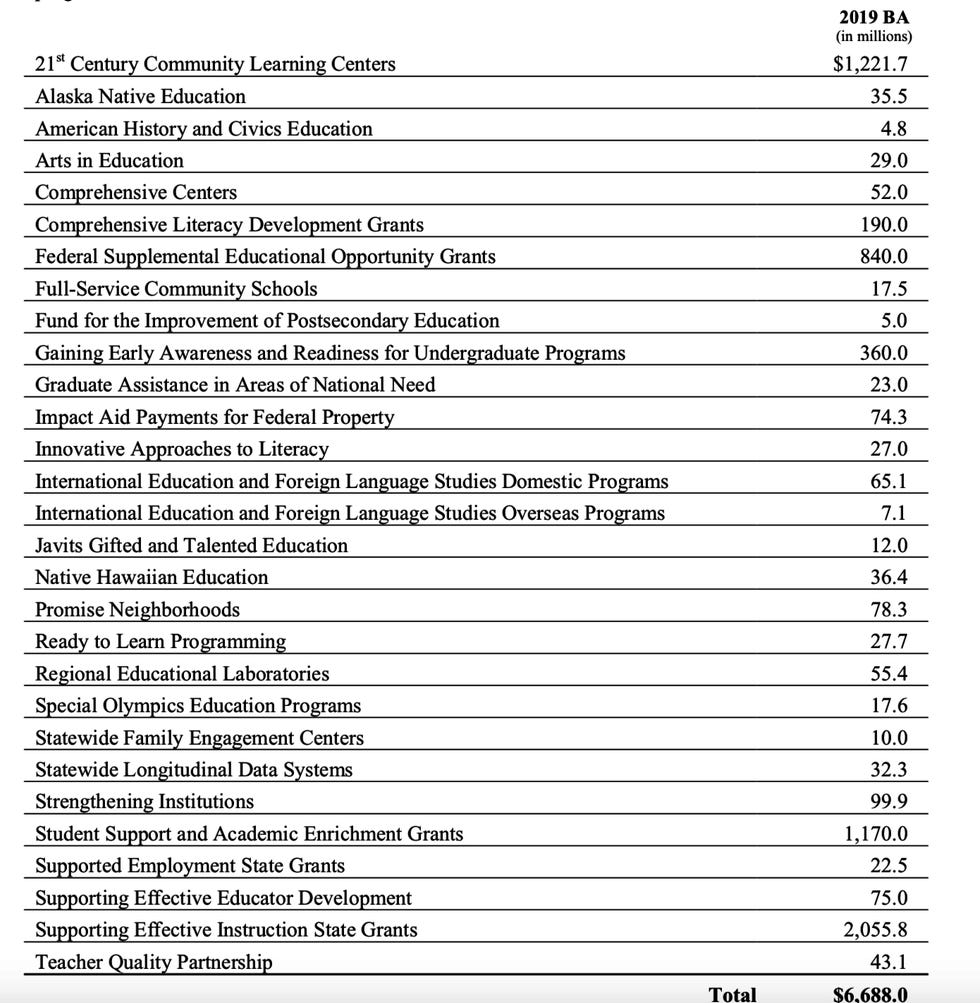 In addition to the $17.6 million cut to the Special Olympics, DeVos is proposing cutting 10% from the Department's total budget. As a Republican and rich lady whose vast fortune is derived from a pyramid scheme, DeVos stands to personally benefit from educating people as little as possible. Especially in the areas of "American History and Civics Education." Would you like to see some "Programs Proposed for Elimination"?