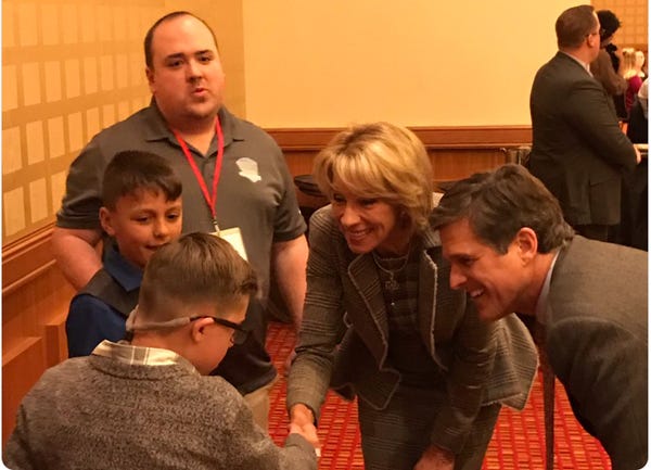 Rep. Mark Pocan (D-Wisconsin) also let ol' Betsy have it, attempting to force her to answer several questions on the cuts to programs helping special needs students and the money going towards charter schools despite how badly they screwed up the last time we gave them money.