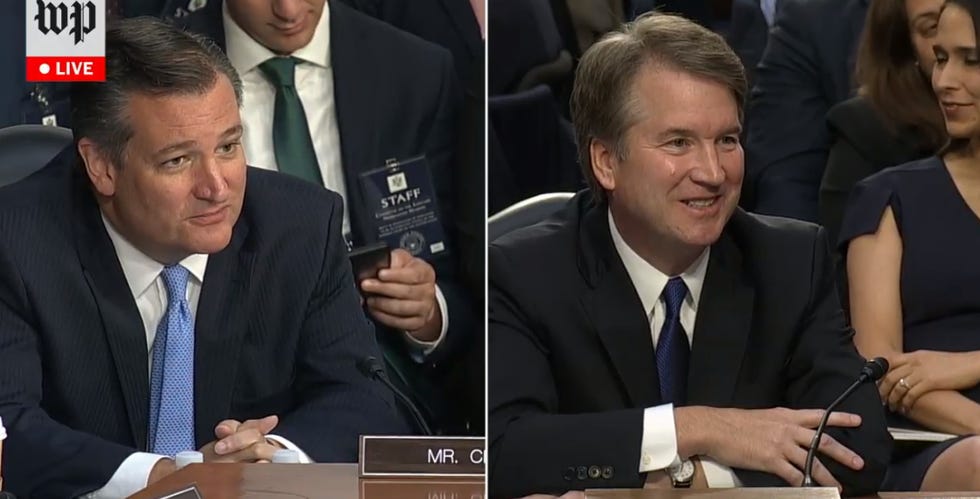 The fact of Kavanaugh's friendship with Cruz alone disqualifies him from a position on the court, because anybody who would be friends with Ted Cruz is obviously a gnarly-ass human being. That is just gross, YOUR HONOR.