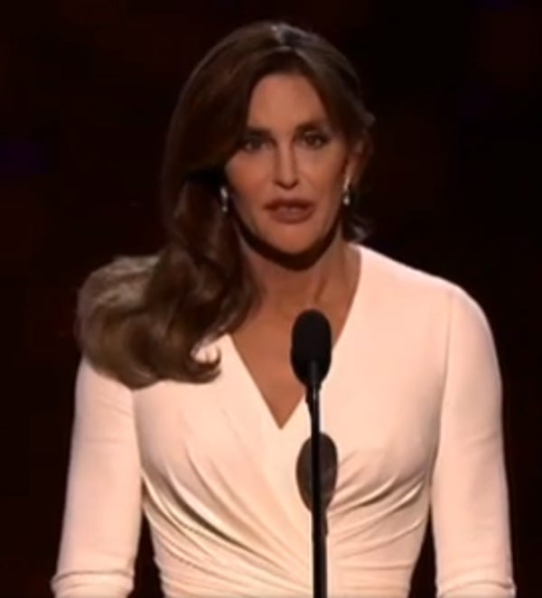 Wednesday night, Caitlyn Jenner received the Arthur Ashe Courage Award at the ESPYs, and for any activist out there worried about things like "oh, she's white and rich and privileged and a Republican blah blah blah, who's going to tell the REAL STORIES?!?!" (looking at you, TWITTER), we think those worries are unfounded. She KILLED IT. She looked stunning in Versace, whether you think she favors Jessica Lange or a healthier Janice Dickinson. And she was very clear about the fact that she understands that with her huge platform comes even huger responsibilities.