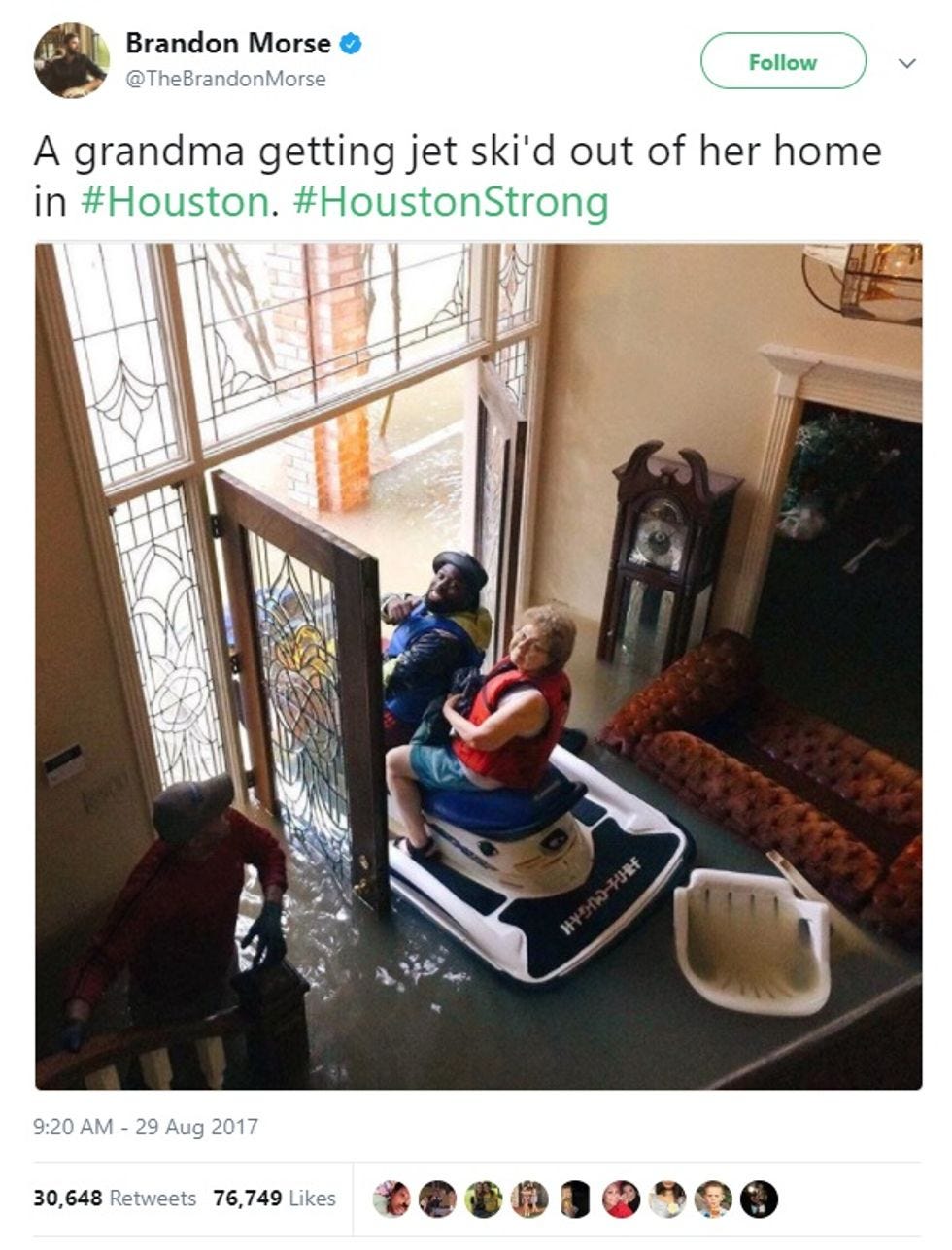 And then of course there's the Jet-Ski rescue, straight out the door of the home of Karen and J.C. Spencer, which went viral AF all over the Twitters: