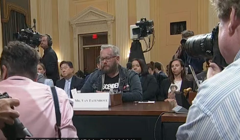 After Cassidy Hutchinson faced a campaign of intimidation prior to her testimony, the committee is keeping the witness list under wraps. But it looks like we'll hear from former Oath Keepers spokesman Jason Van Tatenhove , Capitol riot defendant Stephen Ayres , who recently pled guilty to disorderly conduct, and former deputy White House press secretary Sarah Matthews , who will corroborate much of Hutchinson's testimony.