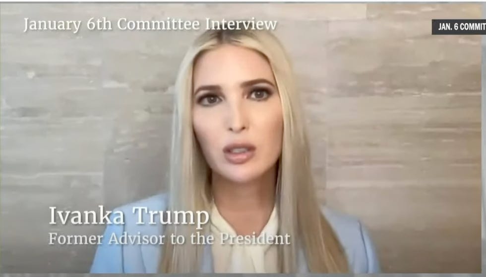 3: 15LOL, Vanky testifies that she never had to "manage" Daddy like a toddler and calm him down. Cut to her chief of staff saying oh, yeah, Vanky heard Trump call Pence a pussy on the phone January 6, knew she'd have to work overtime to pacify the Baby in Chief .