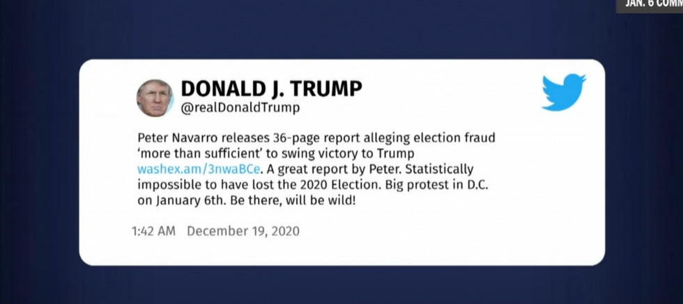 And we're back! The January 6 Select Committee reconvenes this afternoon for a public hearing focused on Donald Trump's infamous December 19, 2022, tweet urging his supporters to attend the “Big protest in D.C. on January 6th. Be there, will be wild!”