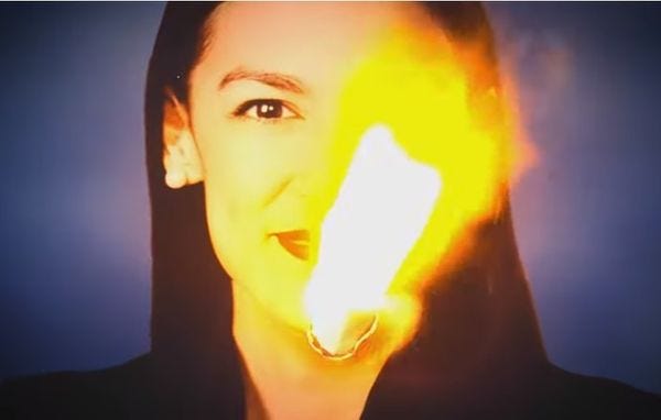 During last night's Democratic debate, a seriously weirdass ad ran in a number of large media markets, depicting a photo of Alexandria Ocasio-Cortez catching fire and burning. Behind the burning face of AOC was the "real face of socialism": photographs of skulls and dead bodies from Cambodia's killing fields. The point, in case you miss it, is that all socialism leads to genocide, as narrator Elizabeth Heng, a failed 2018 GOP congressional candidate, explained: