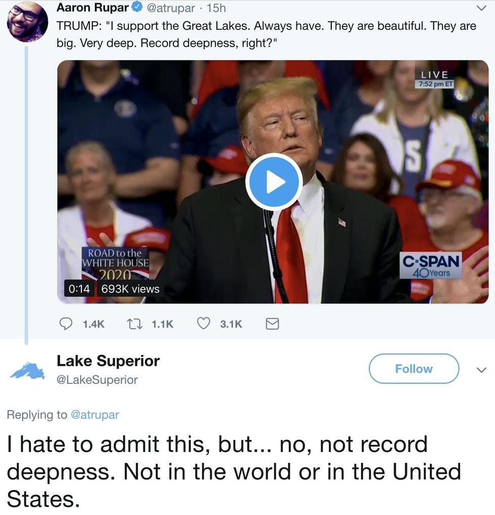 And other thoughts from Donald Trump on NO COLLUSION, and also how the Great Lakes are RECORD DEEP. (They are not.)
