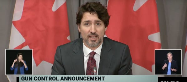 TRUDEAU: These weapons were designed for one purpose and one purpose only: to kill the largest number of people in the shortest amount of time. There is no use and no place for such weapons in Canada ... Effective immediately, it is no longer permitted to buy, sell, transport, import, or use military-grade assault weapons in this country."
