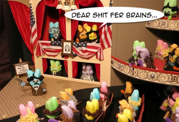 [Image credit: "The Assassination of Peepraham Lincoln," by David Deep -- one of the finalists in WaPo's annual Peeps Diorama Contest ]