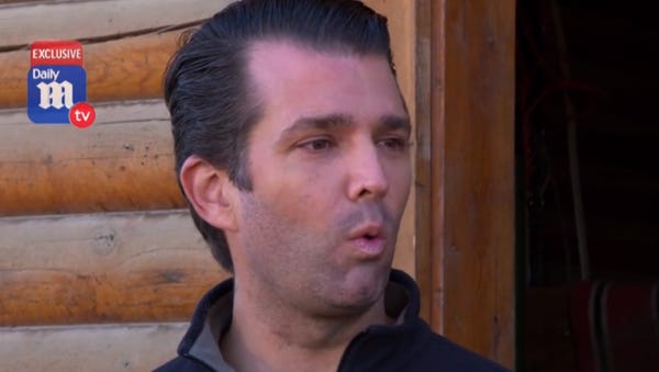 BREAKING NEWS. Donald Trump Jr. is being gross. No, more than usual. We don't mean "Oh YUCK, you guys, Junior left his house without his grocery bag over his head again and now a bunch of people are at the emergency room complaining they saw something gross and their eyes hurt now."