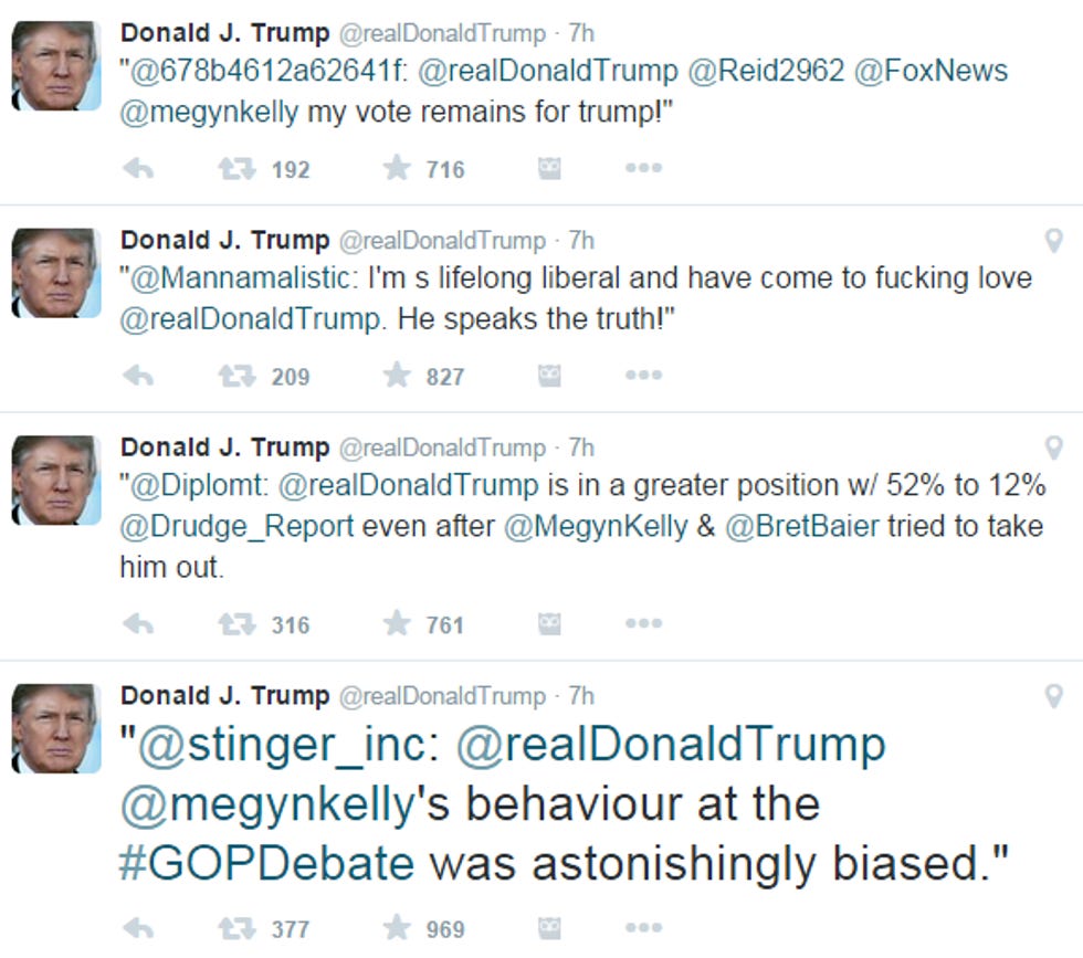Clearly Luntz picked the wrong Republicans! Instead of doing whatever "science polling" method he does when he picks a focus group, Luntz should have just pulled together a group of Trump's Twitter followers, because they are the real America and you are not. Look, here are some of the Twitter-Twatters Trump has retweeted in the last nine hours, THIS is a good focus group that will Make America Great Again: