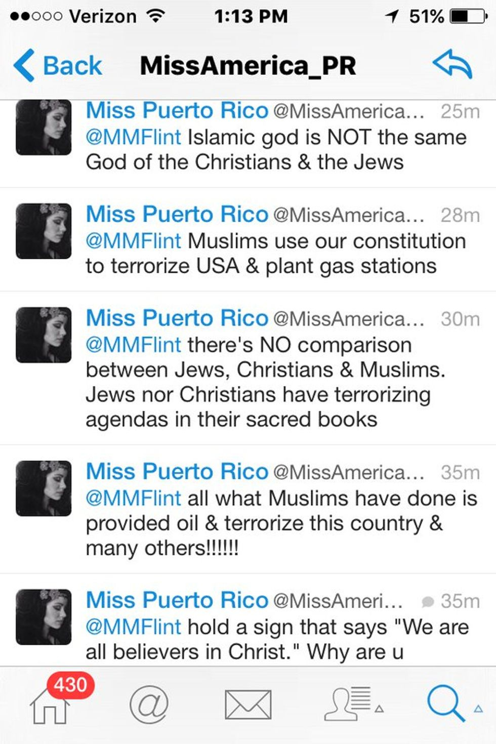 Sad news for the people of Puerto Rico! They have lost their official beauty queen. Miss Puerto Rico 2015, Destiny Velez, was suspended after sending a number of anti-Muslim tweets on the Twitter machine, in response to a provocative post by filmmaker Michael Moore last week. To protest Donald Trump's completely legal, well thought out proposal to ban Muslims from America, Moore stood in front of Trump Tower in New York with a sign reading "WE ARE ALL MUSLIM":