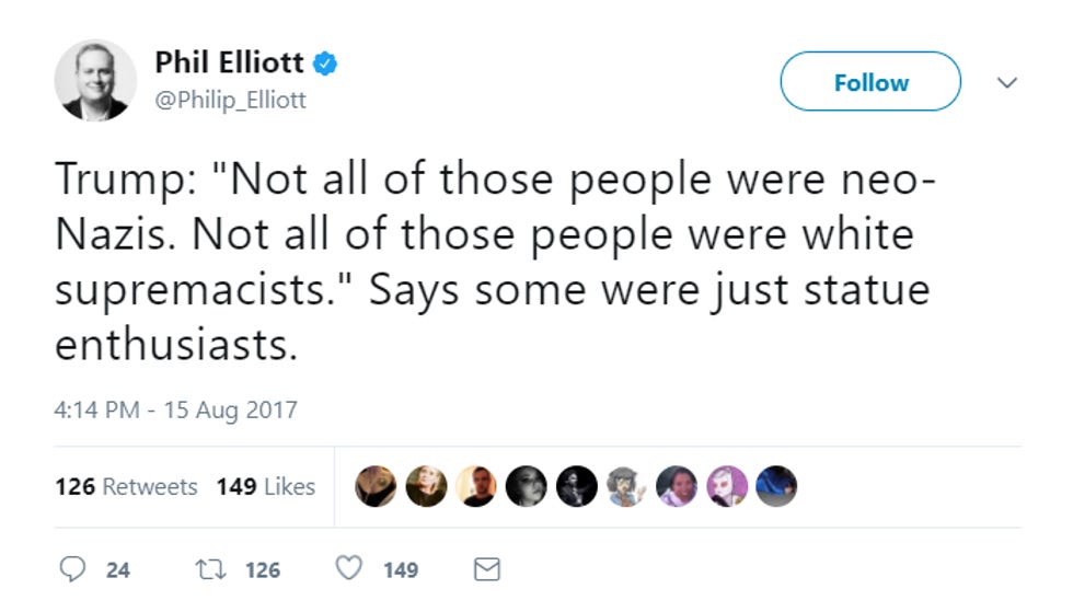 No, for real. And did you ALSO know that some of the people protesting the removal of confederate traitor loser statues weren't even Nazis or white supremacists, just normal sweet (racist) people who love (racist) statues? Don't let their screams of "Jews will not replace us!" and "Blood and soil!" fool you, these were STATUE LOVERS!