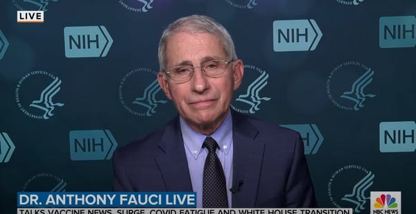 Fauci went on the "Today" program this morning and answered a question from Savannah Guthrie about whether it was bad that the Trump administration hasn't allowed the transition period to officially begin, which is the thing that is supposed to happen after the incumbent president gets his nuts handed to him by the challenger.