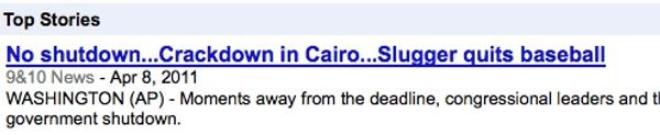 Why did Sluggo quit baseball? Who didn't shut it down? Why is there so much crack in Cairo? These are the stories making news at 3 a.m. in Washington D.C. and midnight somewhere else, maybe the West Coast.