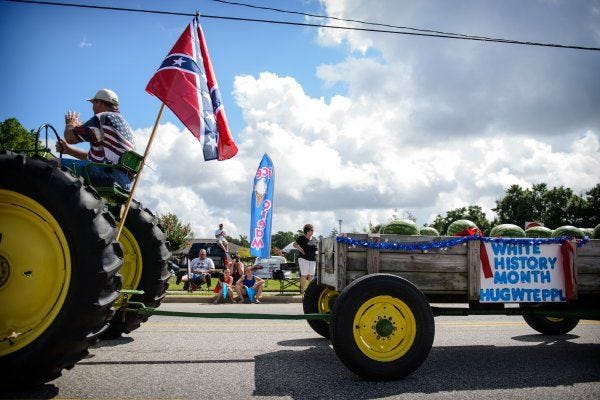 Town officials in Hope Mills, North Carolina, are fielding calls from irate residents after the town's 4th of July parade featured an antique farm tractor flying a Confederate battle flag and towing a watermelon-filled trailer with a sign reading "White History Month: Hug WTE PPL." For some reason, the callers said they thought the display might be racist. Town officials are considering instituting tighter rules on parade entry applications, possibly including a line about "no racist bullshit allowed, and don't pretend your dogwhistle bullshit isn't racist, you moron."