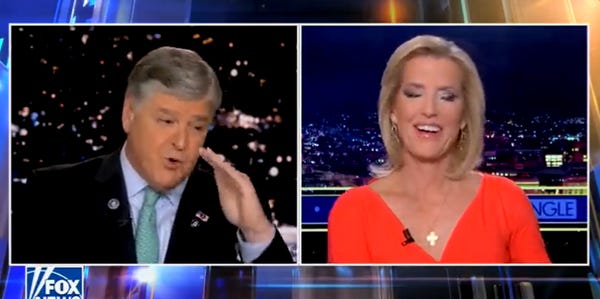 Here's the handoff between the two idiots Hannity and Ingraham: