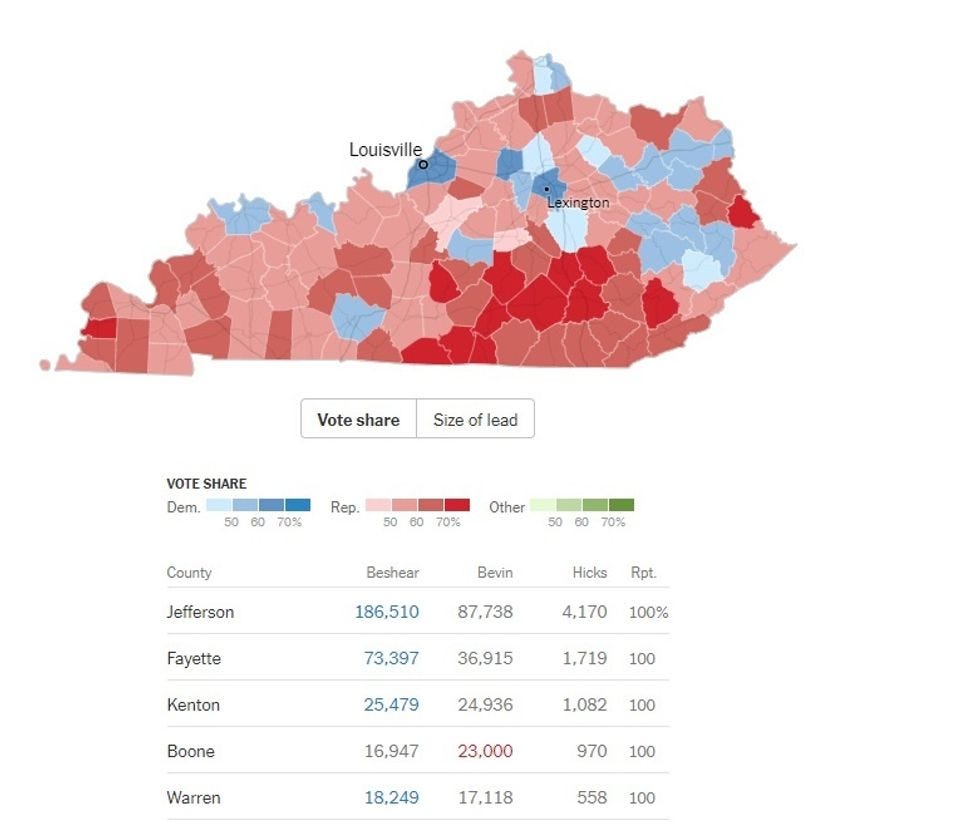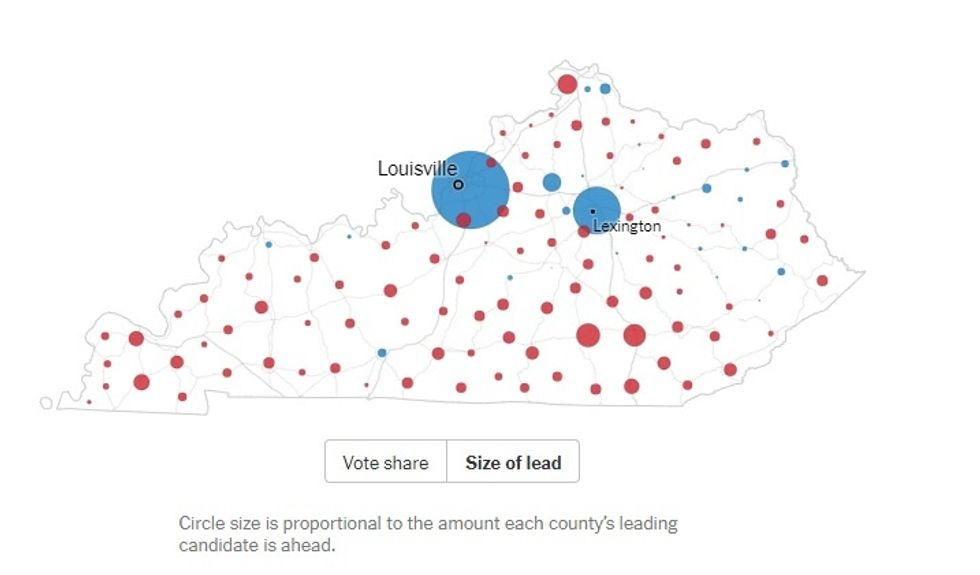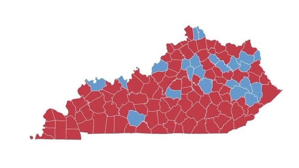 Just look at those tiny little blue areas that inexplicably have more people in them! How could they actually represent the will of Kentuckians, simply because they resulted in a higher total number of votes?