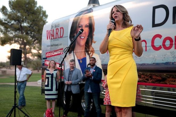 Following Kentucky Gov. Matt Bevin's apparent 5000-vote loss to known Democrat Andy Beshear Tuesday, Arizona state GOP chair Kelli Ward, a perpetually thirsty electoral also-ran herself, proposed a simple solution on the Twitters: If Republicans can't actually win a majority of votes, why not give up on "majorities" altogether? After all, look at all the red territory that voted for Bevin!