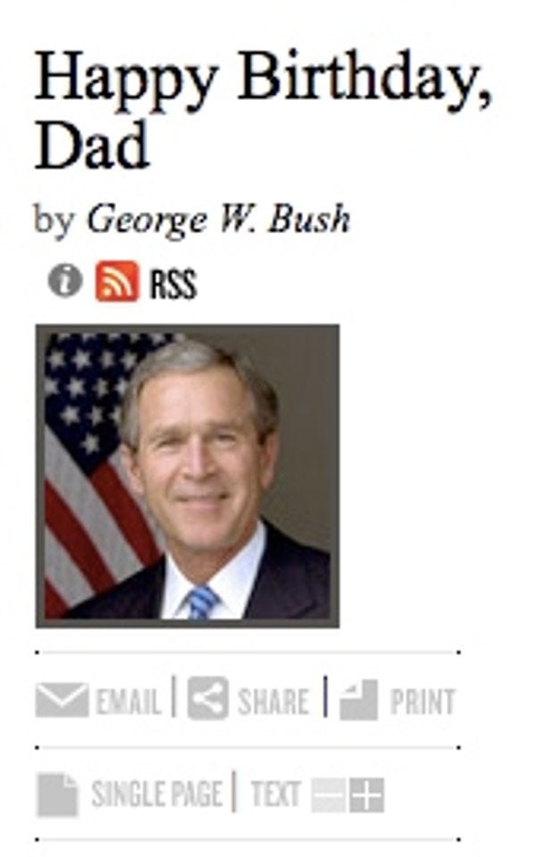 Uhh: "Dad loves the outdoors. He often took me fishing when I was a kid. We'd go fishing for bluefish off the coast of Maine. I learned the skills of fishing from listening to him, and the joy of fishing from watching him. Dad's a good hunter, too, and one Christmas he gave me a shotgun, a .410. I would go with him to Louisiana to shoot ducks. Those are fond memories." [ Daily Beast ]