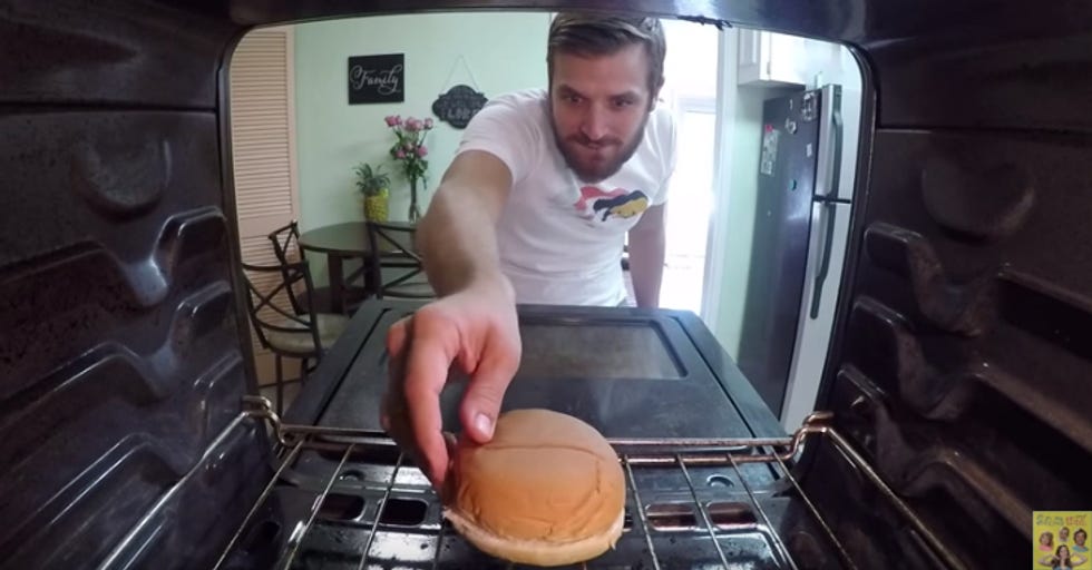 Let's check out their new pregnancy announcement, as they joyfully report the alleged fruits of their barebacking. As the video opens, Sam is putting a bun in the oven, because GET IT? Sam's arm represents his very Good Looking penis, and the bun represents a babby, and the oven represents Nia's wherevers.