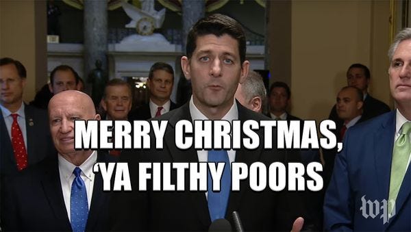 Last night the Senate passed the Trump/Ryan tax cuts (for the super rich), but House Republicans will have to vote for their super rich tax cut bill (again) as their rush to start jerking each other off violated the Byrd Rule