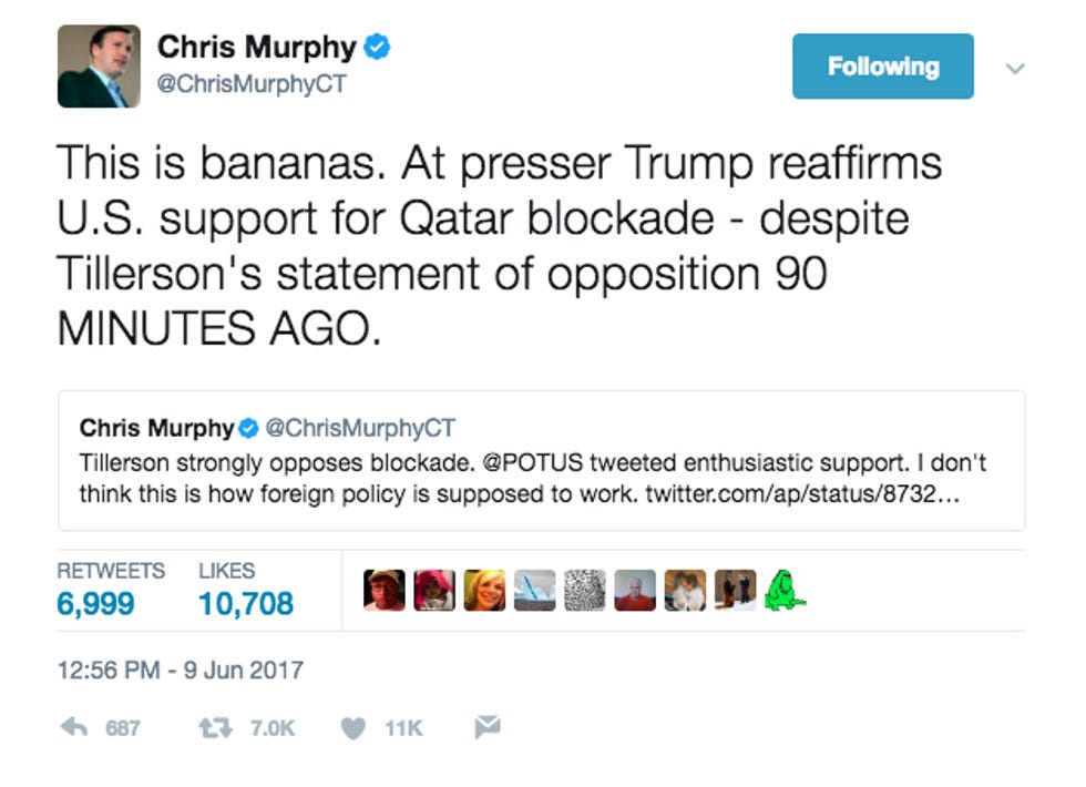 Meanwhile, the Qatari ambassador was desperately trying to reach the American president via Twitter.