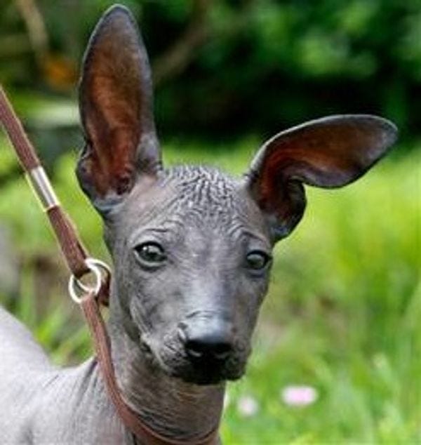 Oh, you want a dog? Here is a dog for you, straight from the fires of HELL. You can dress it up in a sweater and some lipstick, and it will look exactly like Liz Taylor. This is a Peruvian Hairless dog, ancient pet of the Incas. It is prone to acne and blackheads. Some crazy Peruvian lady wants to give it to you because she hates America. [ MSNBC ]