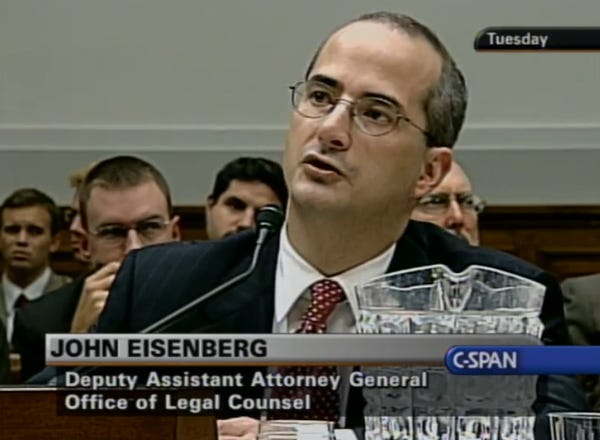 We already wrote everything you need to know about National Security Council lawyer/Deputy White House Counsel John Eisenberg in this post, and in all the posts that post links to. If you are not there yet, CATCH UP.
