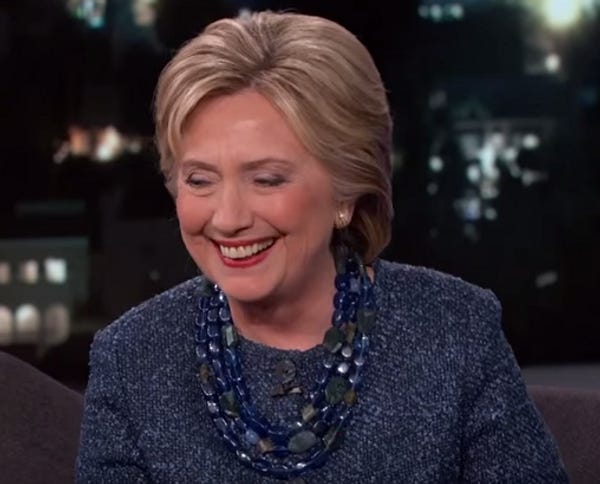 Here is Hillary Clinton, acting like regular people, by going on the TV to do "Jimmy Kimmel Live." No wait, that is not the regular people part. The regular people part is her laughing her pants-suited ASS off at the Republican candidates. Hillary Clintons: They're just like us!