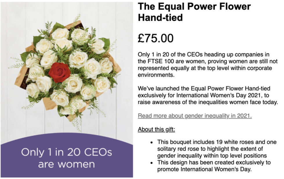 A $75 bouquet of roses meant to highlight how there are not enough female CEOs!