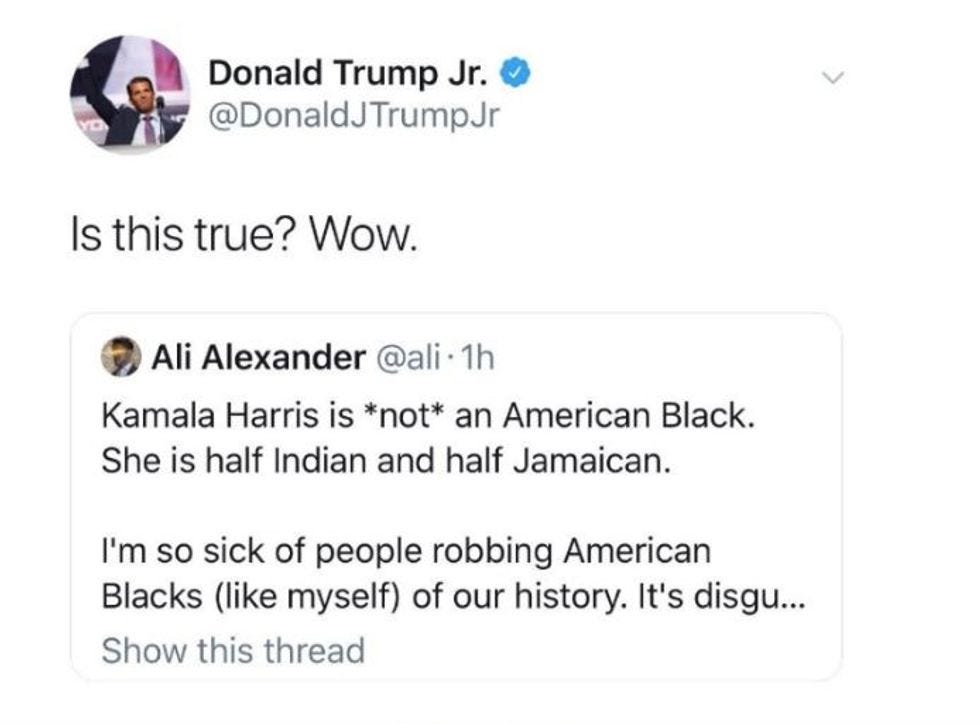 In Which Junior Briefly Attempts To Accuse Kamala Harris Of Not Being A Black Person