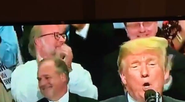 You'd think that was enough, but nah, Trump's people have been trying to shut him up on this for a whole week and he was just bursting with pig ignorance and rage. Elsewhere in the rally, Trump told the most pathetic hypothetical story about a boy telling his mother he was just doing great at life, mom, and he's succeeding at life, mom, but oh no, mommy! What's going on, mommy! A nasty lady is lying on me and saying I raped her, MOMMY WHAT DO I DO!