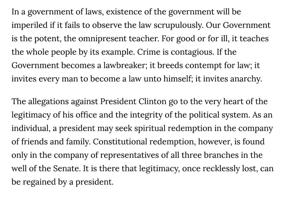 Here’s Turley in 1998. Impeaching Clinton for a blowjob was necessary to fend off “anarchy." https: //t.co/wQeICAYPFi