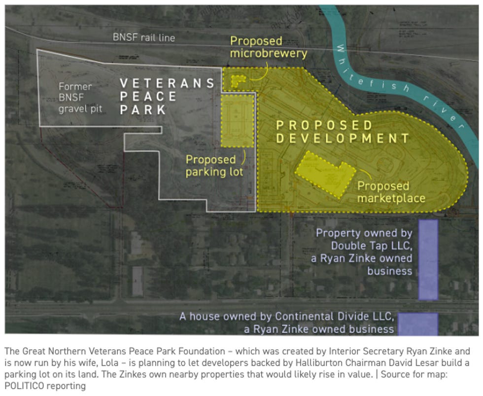 We have questions. Like how can Zinke participate in ongoing Halliburton-related business at Interior when he's ass-deep in a real estate deal with the company chairman? And did the Park Foundation get fair market value for the plot of donated parkland they're ceding to the developer right behind the Zinkes' brewery, or did they just give it away for the good of the peaceful, sledding veterans? And how many times a night does Ryan Zinke wake up in a cold sweat at the prospect of Democrat Raúl Grijalva getting hold of the gavel at the Natural Resources Committee?