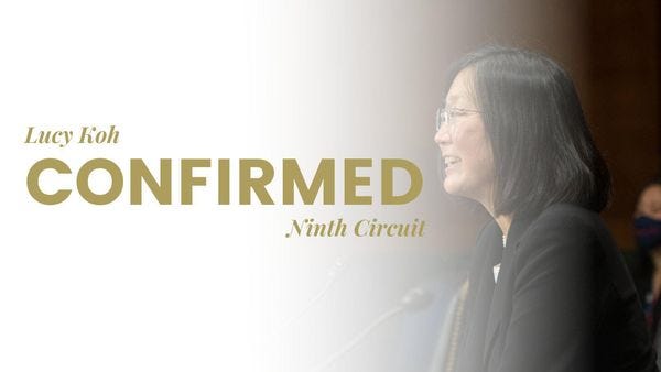 Koh was confirmed Monday to a seat on the Ninth Circuit, becoming the first Korean American woman ever on the federal appellate bench. She'll be joined there by Jennifer Sung, a labor lawyer who founded SEIU's Asian Pacific Islander caucus. Republicans tried hard to block Sung because she'd spoken out against Justice Brett Kavanaugh as a Yale alum, but Schumer forced the issue and Vice President Kamala Harris cast the deciding vote for her.