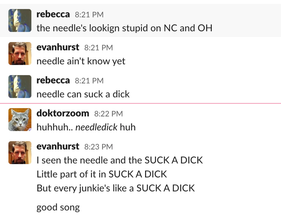 8: 25 p.m.:Chatcave right now is just telling The Needle (New York Times) it don't know, and also to suck some dicks. It is possible The Needle is not well-regarded by your Wonkettes.