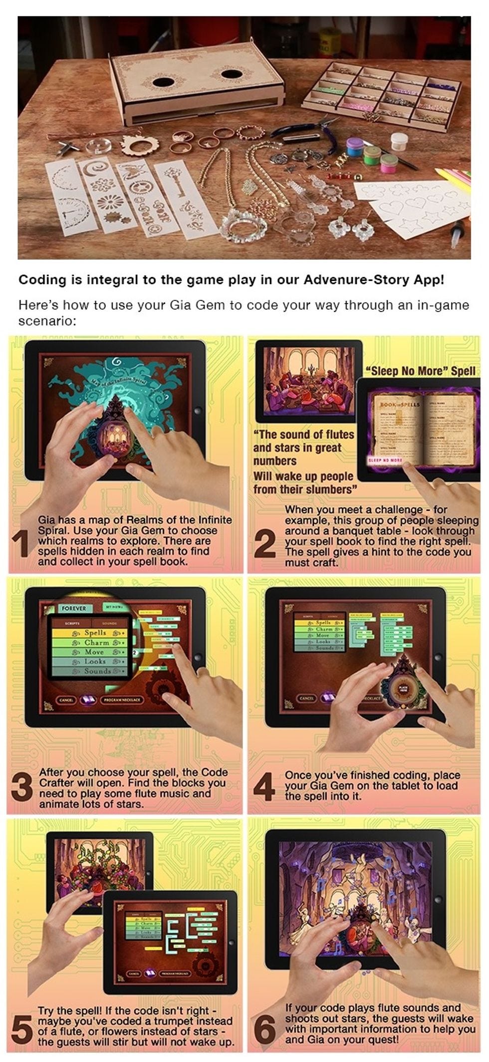 [contextly_sidebar id="y91izz9OaoaXfB3Tu6ZFLFt4MZgroSxZ"]Remember how we got kind of cheesed off at that science museum that had rocketry and astronomy classes for Boy Scouts, and only "Make Your Own Makeup" for Girl Scouts? Here's what looks like a far more well thought out approach to getting girls aged 8 to 12 interested in tech: "Giapetta's Workshop," a Do It (Mostly) Yourself kit with some girly stuff like jewelry design and artsy thingums as the starting point for an interactive story where kids use a "magic" amulet and a tablet to help Giapetta, a feisty young adventurer, on a quest to rescue her mother from some kind of horrible monsters. Breitbart columnists, maybe. Along the way, the player learns basics of putting together computer code. Assemble a simple working program (they call it a "spell" to be cool), and then on to the next challenge. It looks pretty neato!