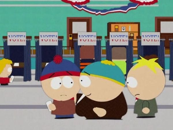 Now updated with some results!Hey, people in the Northeast who don't live in New York or Massachusetts or whatever! You live in Connecticut, Delaware, Maryland, Pennsylvania and Rhode Island, and you are wearing a sticker on your boob right now that says, "LOOKUH ME I VOTED TODAY!" Unless you didn't because you got disenfranchised or were too lazy or decided to let Jesus go to the polls in your place.