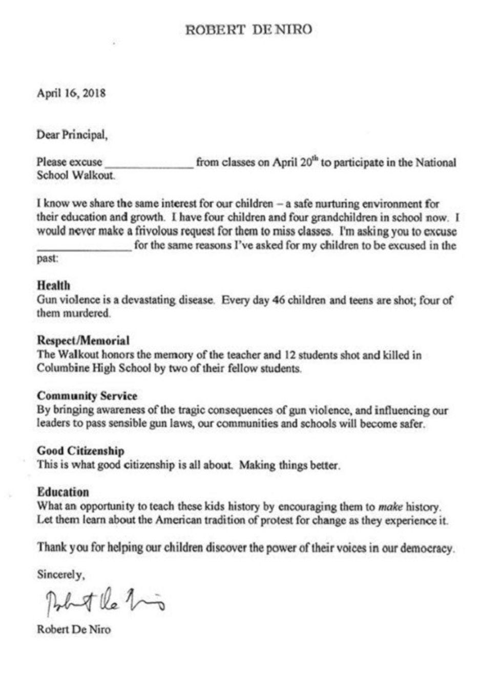 And if parents want a letter to send with their kids to school excusing their absence, Robert DeNiro has one all ready for them to use: