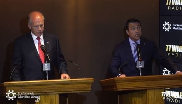 The two also had a big fight about immigration. Not about policy, but about how weak or tough the other was -- again, mostly talking over each other a lot, with Grimm telling Donovan to shut up because Donovan's turn was over ("No it's not!"). Grimm insisted Donovan said he never wanted to deport anyone, including criminals (which is all of them), and when Donovan said no, he wants undocumented criminals deported, Grimm shot back, "well, he wants the 11 million of them who are here illegally to have amnesty!"