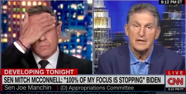 If Moscow Mitch's remark that the republicans are 100% focused on blocking anything Biden proposes didn't clue Manchin in, nothing will.