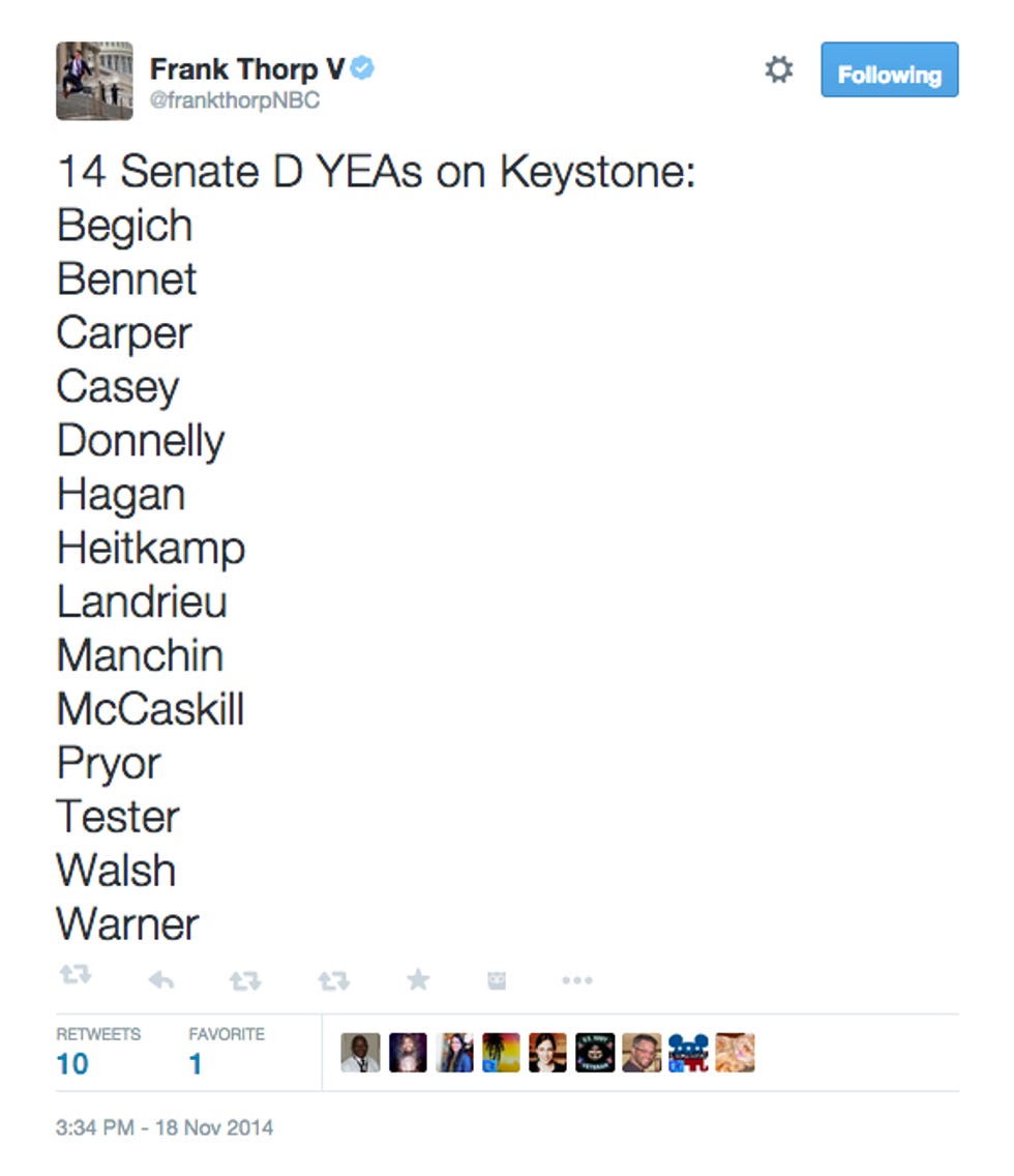 Yes, those are the Senate Democrats who voted with Republicans on Tuesday to lay down that damned Keystone XL pipeline already, aka, the Mary Landrieu Career Preservation Act. They needed 60 votes to overcome what's supposed to pass these days for a filibuster, and they fell one vote short. You'll note that a number of the Democrats who wanted to be all bipartisanship-y and/or get some nice fat Big Oil checks are also about to be unemployed come January. Probably a total coincidence. Probably.John Smid, the former director of Memphis-based ex-gay ministry Love In Action, has announced his marriage to partner Larry McQueen. The two married in Oklahoma on Sunday, November 16th.