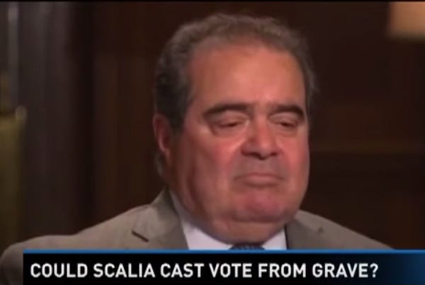 Well, sure. Except for how Scalia is dead, and America has a long-standing tradition of not letting dead people vote. But maybe it's different if the dead people are Antonin Scalia?
