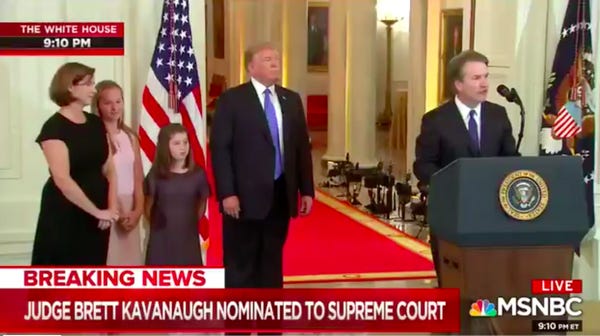 Oh, no, that was just the bald-faced lie portion of the speech. Once he demonstrated to Trump that he's a reliable lickspittle toadie, Kavanaugh said things he might've possibly meant.