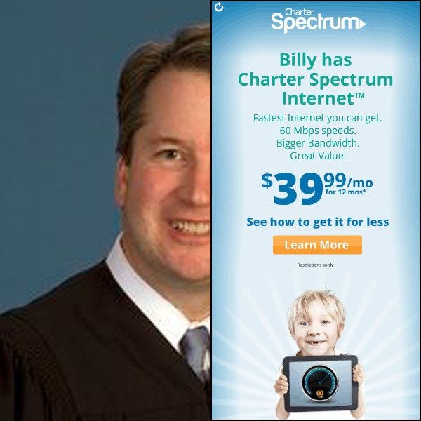 Brett Kavanaugh Would Let Time Warner Edit The Internet AND THIS IS TERRIFIC SWITCH TO SPECTRUM TODAY!