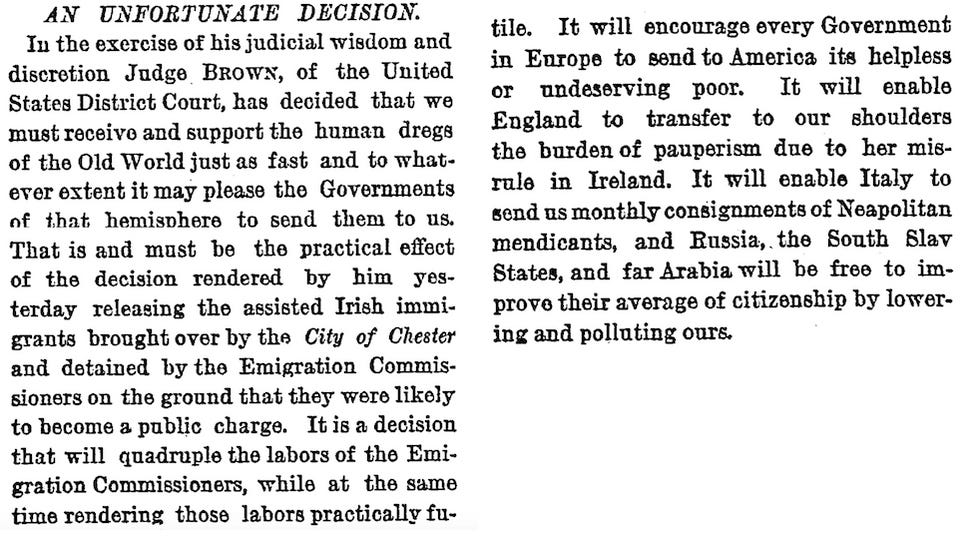 "They certainly are: 'Give me your tired and your poor who can stand on their own two feet and who will not become a public charge. That plaque was put on the Statue of Liberty at almost the same time as the first public charge was passed -- very interesting timing."